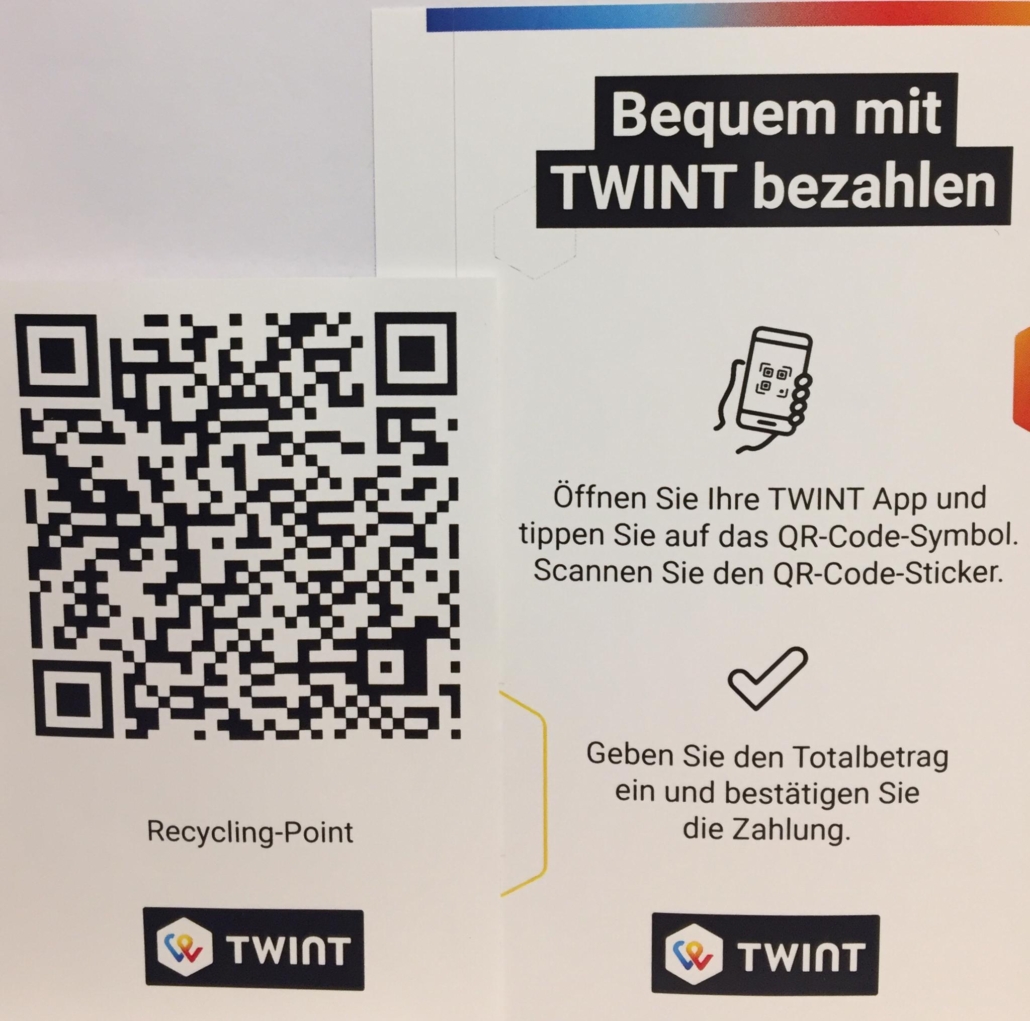 Ab sofort kann man beim RECYCLING-POINT auch bargeldlos mit TWINT bezahlen. Somit entfällt die Suche nach dem passenden Kleingeld. Kommen Sie vorbei und probieren Sie es aus. Wir freuen uns über Ihren Besuch!
